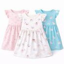 EIO Girls Cotton Short sleeves Frock set Combo Pack 3 | Multicolor Knee Length Casual Dresses for Kids | Soft & Breathable Summer Wear Outfit