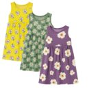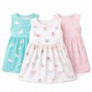 EIO Girls Cotton Frock Dress Combo Pack | Multicolor Knee Length Casual Dresses for Kids | Soft & Breathable Summer Wear Outfit Frock Set
