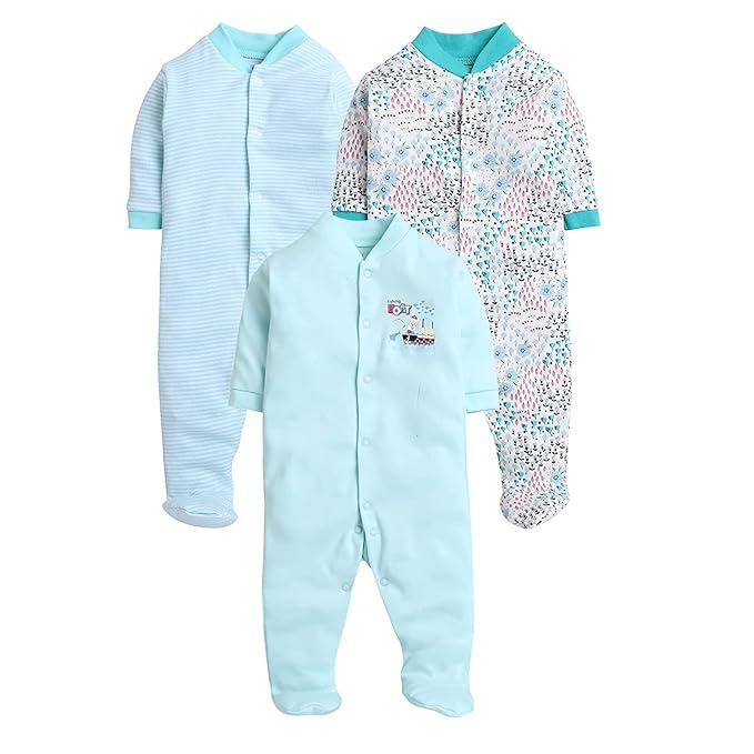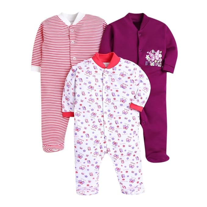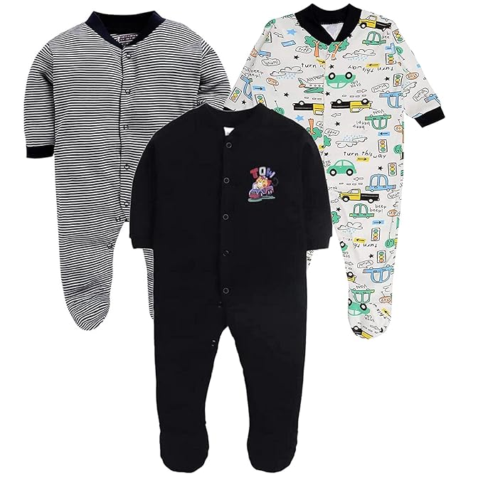 This pack of 3 adorable printed rompers from EIO is perfect for daily use, playtime, or nap time. The breathable fabric keeps your baby cool and comfortable, while the easy snap-button closure ensures quick and hassle-free diaper changes.
